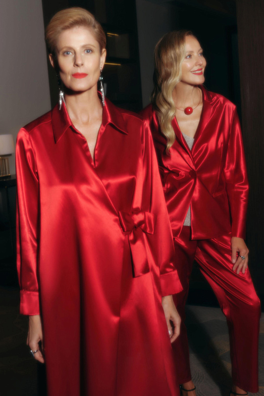 Эффектное распашное платье оригинальной дизайнерской конструкции из премиального атласа с добавлением шелка. Исполнено в трендовом оттенке кармин. Имитация запАха на завязках позволяет регулировать посадку по талии. Рубашечный воротник на стойке. Спинка на кокетке создает летящий эффект. Втачной рукав на манжете с пуговицами. Карманы в боковых швах.