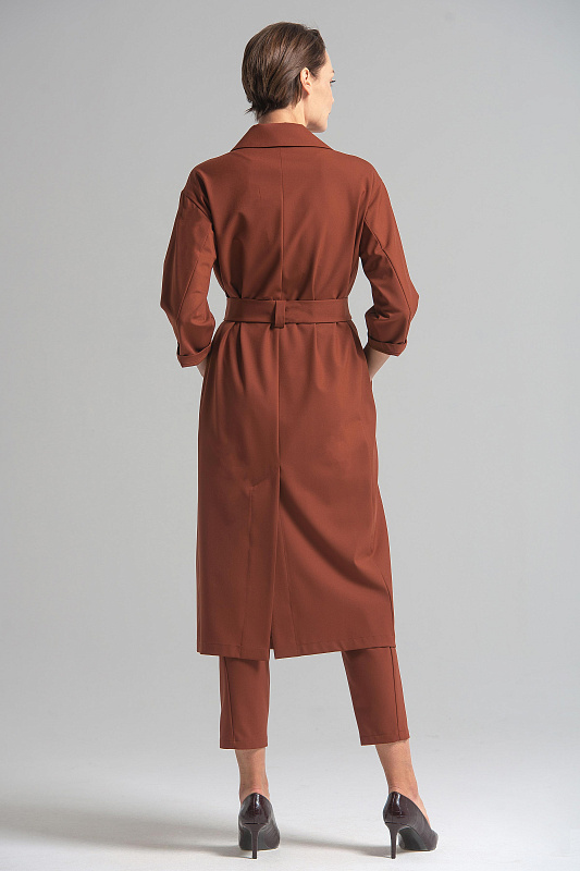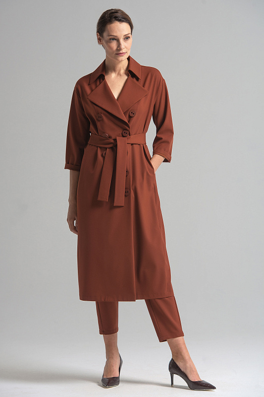 Двубортное платье приталенного силуэта, со шлицей, на оригинальных пуговицах. Отложной воротник, спущенная линия плеча, карманы в шве, на поясе. Уникальная ткань нового поколения — керамика, оказывающая благотворное воздействие на здоровье, содержит антибактериальные вещества, препятствующие размножению бактерий и, как следствие, появлению запаха от одежды. Комфортная, пластичная ткань практически не мнется.