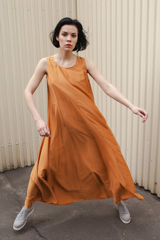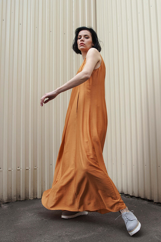 Невероятно чувственное, яркое и женственное платьте клеш, без рукавов,облегающее вверху и расклешенное от линии груди, безупречно подчеркивает фигуру и делает образ чарующим. Кроме того такой фасон украсит любую фигуру. А шелк, из которого выполнено платье, завершает неповторимый и нежный образ. Длина изделия по спинке 133 см.