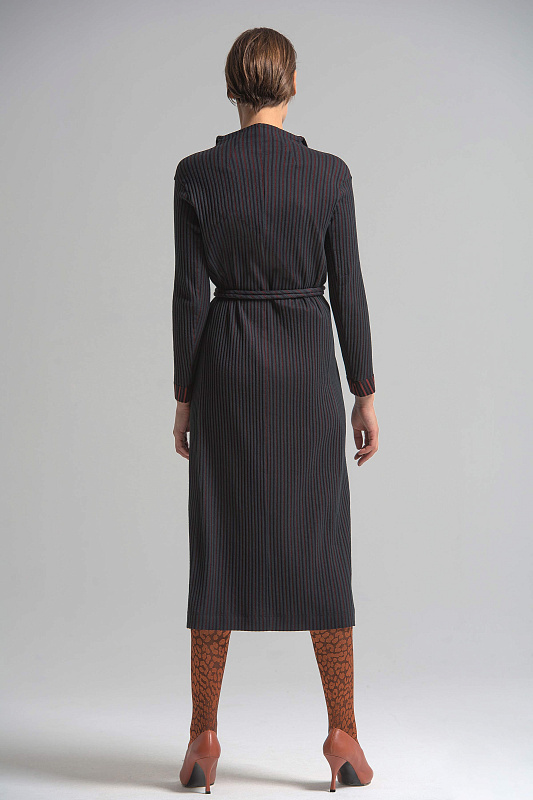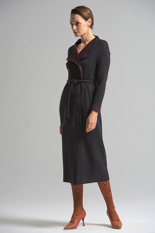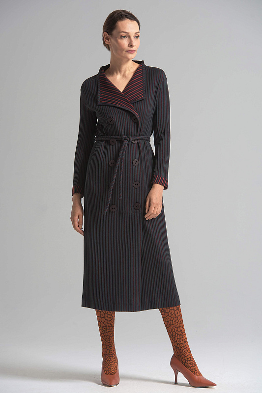 Платье двубортное с оригинальным поясом, подчеркивающим талию. Воротник-стойка, спущенная линия плеча, длинный втачной рукав, карман в шве. Модель прекрасно подойдет как на каждый день, так и для вечернего выхода. Ткань – фактурный хлопок с вискозой. Небольшое содержание эластана обеспечивает комфорт и свободу движений.