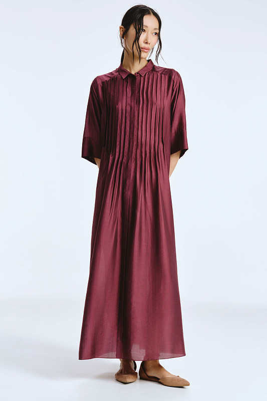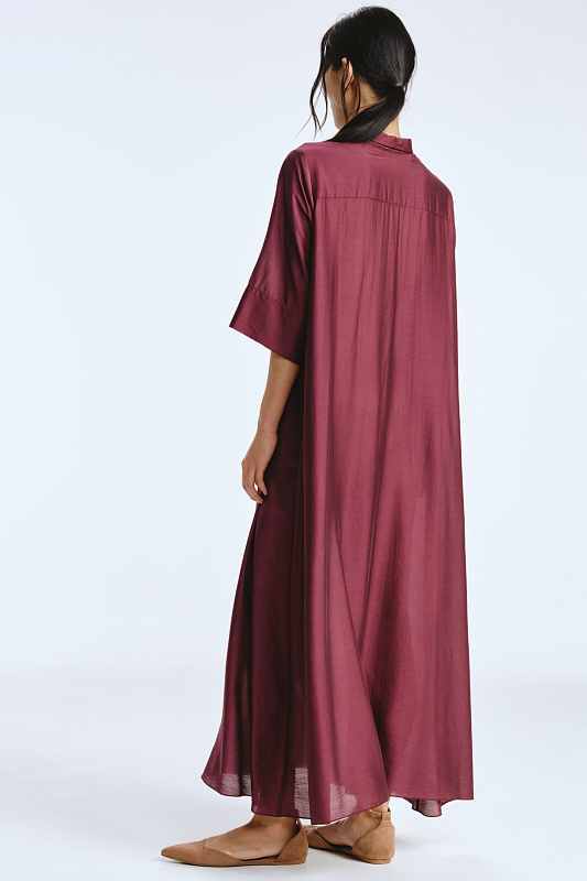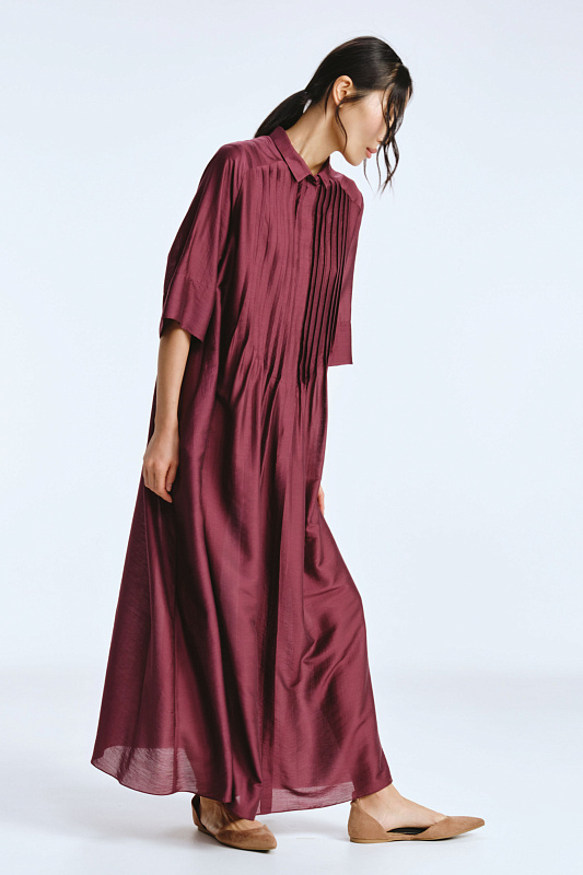 Невероятное легкое платье-рубашка летящего силуэта выполнено из микромодала с добавлением шелка. Длинное, свободное, как символ высокого статуса. Классический крой всегда остаётся в тренде благодаря всё новым и новым идеям дизайнеров. Длина рукава весьма комфортная, двойной слой ткани завершает рукав и придает законченность. Маленькие пуговицы, скрытые под планкой, и рубашечный ворот поддерживают классику образа. Защипы от линии плеча по переду пикантно скрывают скульптурность тела. От условной линии талии защипы расходятся и придают динамику при ходьбе. Вместительные карманы — не просто декор, это комфорт и удобство. Скрытый крой карманов не добавляет лишнего объема, сохраняя чистоту линий. Это платье-рубашка для тех, кто устал от скучных базовых моделей и хочет добавить в гардероб «изюминку».