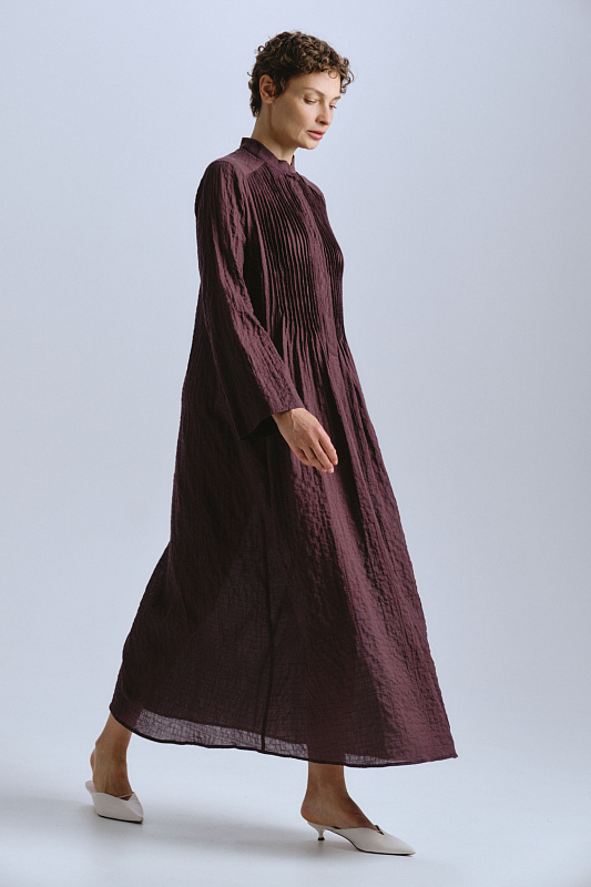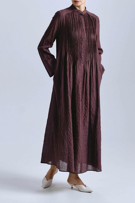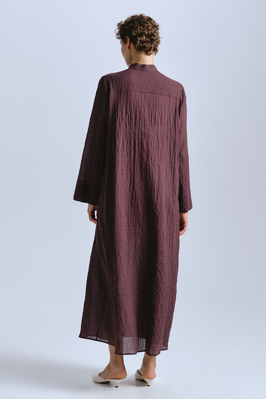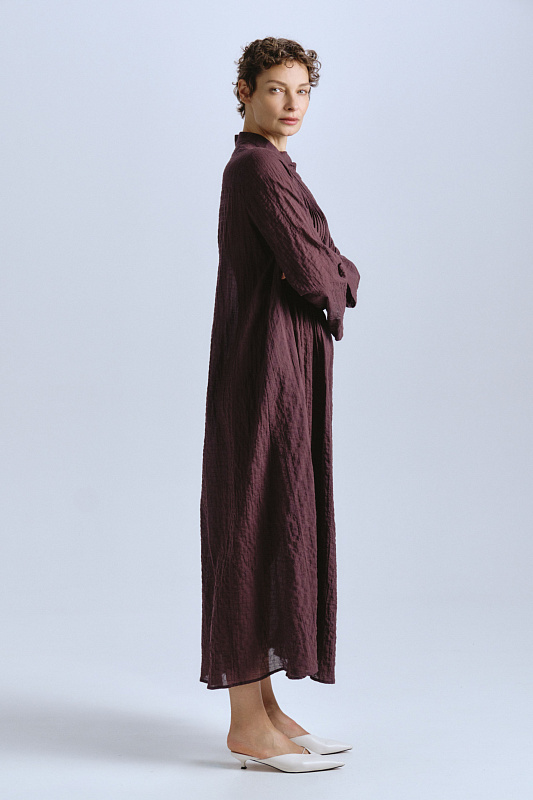 Эффектное платье-рубашка летящего силуэта выполнено из жатого хлопка с добалением эластана.. Длинное, свободное, как символ высокого статуса. Классический крой всегда актуален. Комфортный длинный рукав завершает двойной слой ткани и придает законченность. Маленькие пуговицы, скрытые под планкой, и рубашечный ворот поддерживают классику образа. Защипы от линии плеча по переду пикантно скрывают скульптурность тела. От условной линии талии защипы расходятся и придают динамику при ходьбе. Вместительные карманы — не просто декор, это комфорт и удобство. Скрытый крой карманов не добавляет лишнего объема, сохраняя чистоту линий. Это платье-рубашка для для смелых и уверенных в своем стиле.