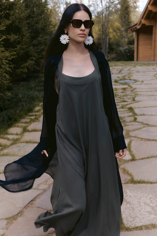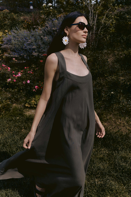 Длинный сарафан-солнце из благородного льна станет воплощением природной женственности и изысканного вкуса. Он мягко струится и дарит невесомое дыхание. Тайные карманы в швах — утонченная практичность, где можно спрятать маленькие секреты. Широкие бретели делают акцент на линии шеи и плеч. Бретели дополняет изящный минимализм — обрамление лифа спереди широкой лентой из той же ткани. Сзади немного присборено тонкой резинкой — это идеальный баланс свободы и безупречной посадки. Дополняйте сарафан различными аксессуарами и обувью и меняйте образы по своему вдохновению.
