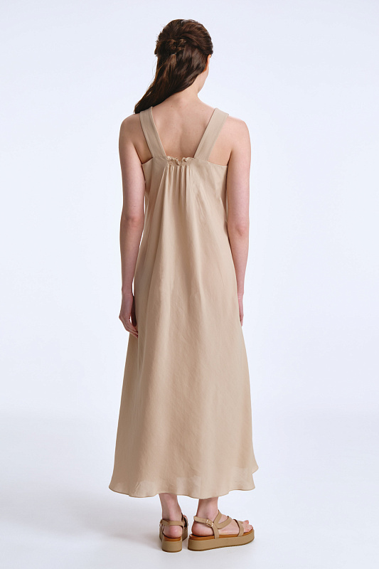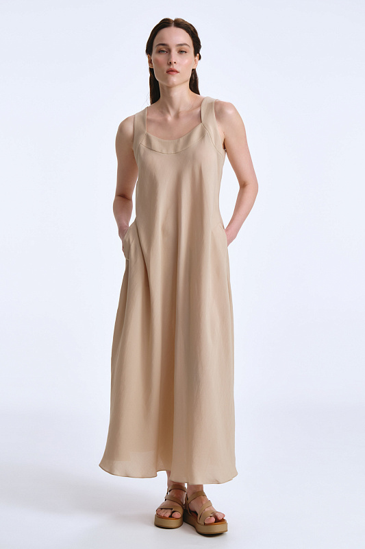 Длинный сарафан-солнце из благородного льна станет воплощением природной женственности и изысканного вкуса. Он мягко струится и дарит невесомое дыхание. Тайные карманы в швах — утонченная практичность, где можно спрятать маленькие секреты. Широкие бретели делают акцент на линии шеи и плеч. Бретели дополняет изящный минимализм — обрамление лифа спереди широкой лентой из той же ткани. Сзади немного присборено тонкой резинкой — это идеальный баланс свободы и безупречной посадки. Дополняйте сарафан различными аксессуарами и обувью и меняйте образы по своему вдохновению.