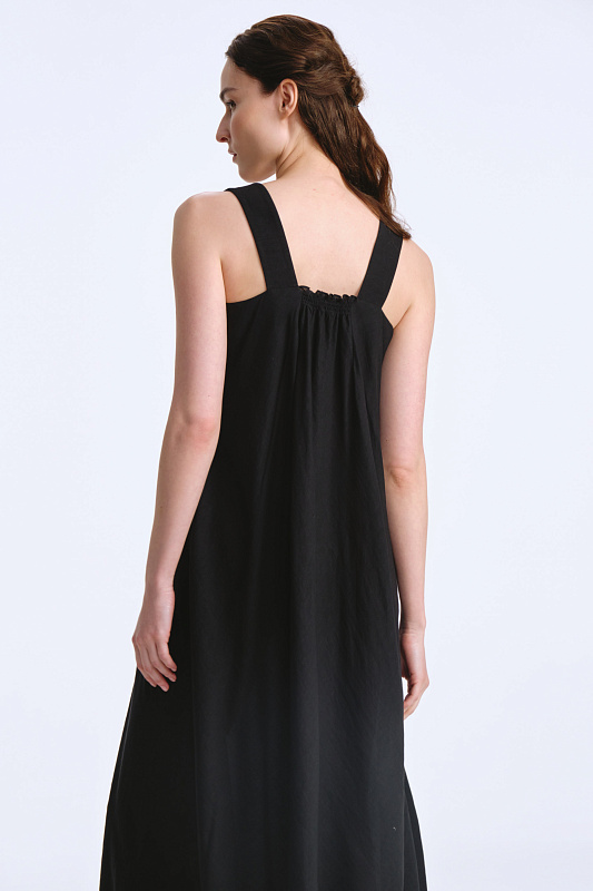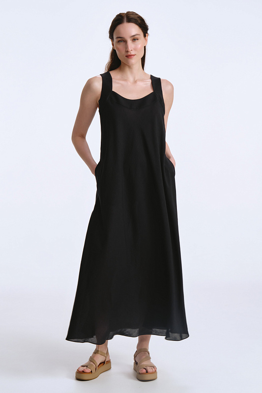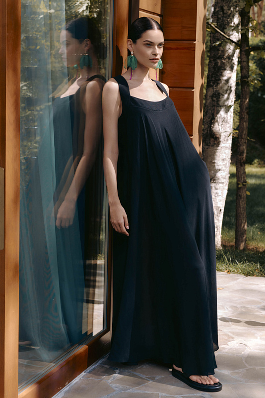 Длинный сарафан-солнце из благородного льна станет воплощением природной женственности и изысканного вкуса. Он мягко струится и дарит невесомое дыхание. Тайные карманы в швах — утонченная практичность, где можно спрятать маленькие секреты. Широкие бретели делают акцент на линии шеи и плеч. Бретели дополняет изящный минимализм — обрамление лифа спереди широкой лентой из той же ткани. Сзади немного присборено тонкой резинкой — это идеальный баланс свободы и безупречной посадки. Дополняйте сарафан различными аксессуарами и обувью и меняйте образы по своему вдохновению.