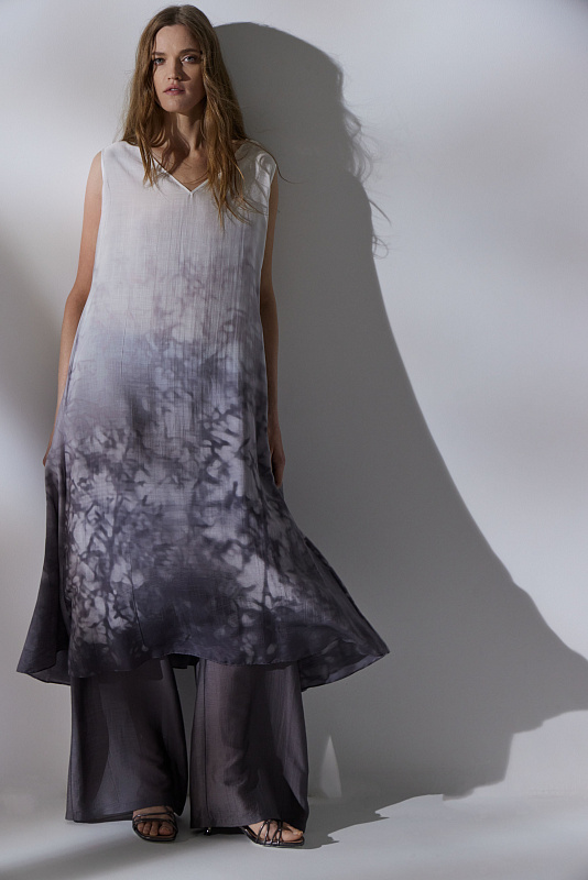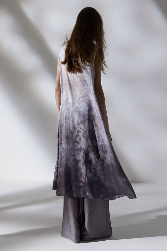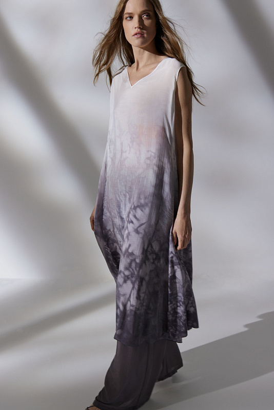 Оригинальное длинное платье без рукавов с фотографическим принтом.Изделие выполнено из нежнейшего шелка с добавлением микромодала. Для создания многослойного образа прекрасно подойдут цветные базовые платья.