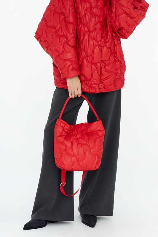 Сумка имеет оригинальный дизайн, выполнена из эко кожи, особенностью которой является устойчивость к перепадам температур, простота ухода. Объемная замысловатая строчка делает изделие уникальным, привлекая заинтересованные взгляды. Подкладка играет важную роль в обеспечении долговечности сумки и выполнена из шелковистой поливискозы. Основное отделение застегивается на тракторную молнию. Внутри есть небольшой карман. Ручка выполнена из жесткого шнура. Съёмный плечевой ремень позволяет носить сумку на плече, освобождая руки и обеспечивая удобство. Дно жесткое.