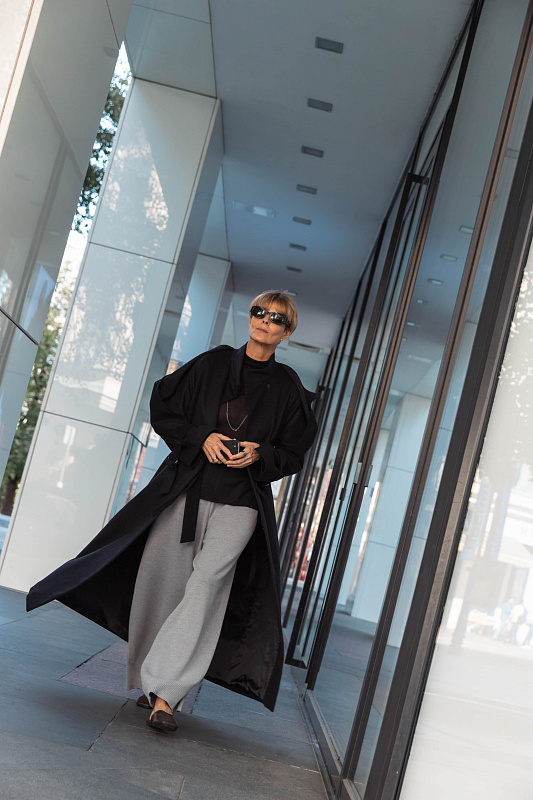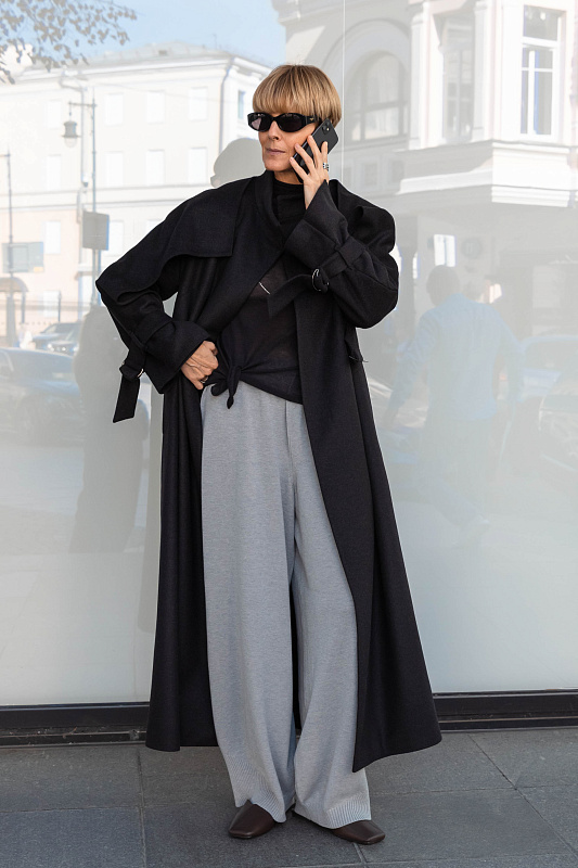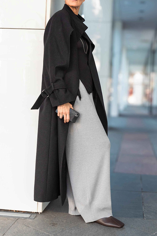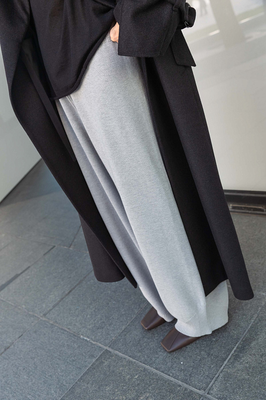 Вязаные брюки из нежной вискозы с кашемиром. Выполнены гладким однотонным переплетением и резинкой по низу изделия, которая придает изделию мягкость формы. Тонкое полотно делает изделие тактильно приятным.