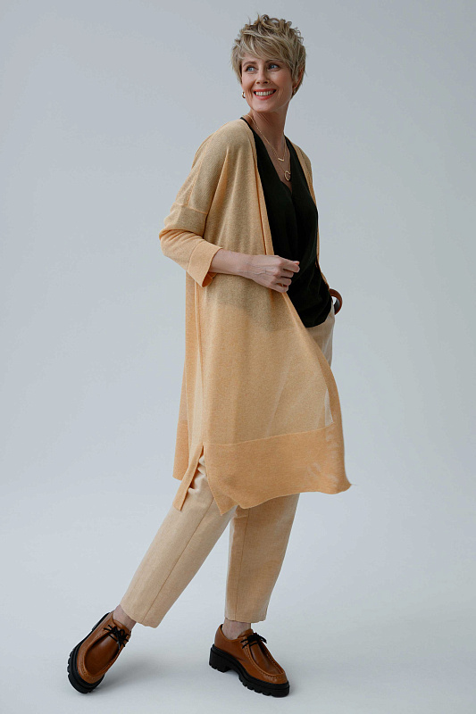 Легкий и комфортный удлиненный кардиган прямого силуэта с длинным рукавом. Полупрозрачное струящееся полотно. Модель выполнена из тонкой и нежной Итальянской вискозы с ненавязчивым блеском.