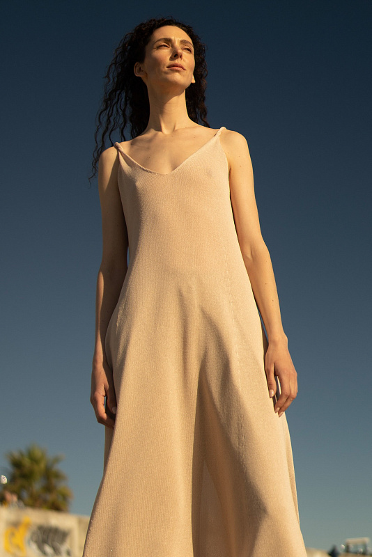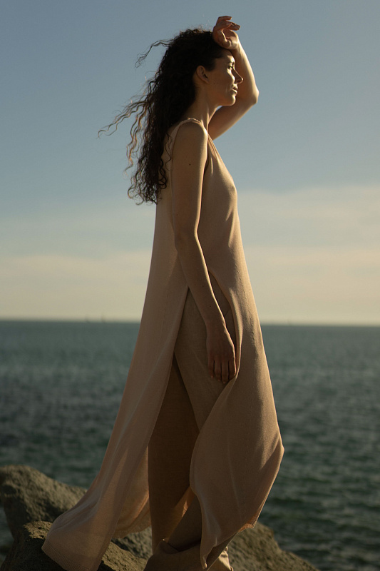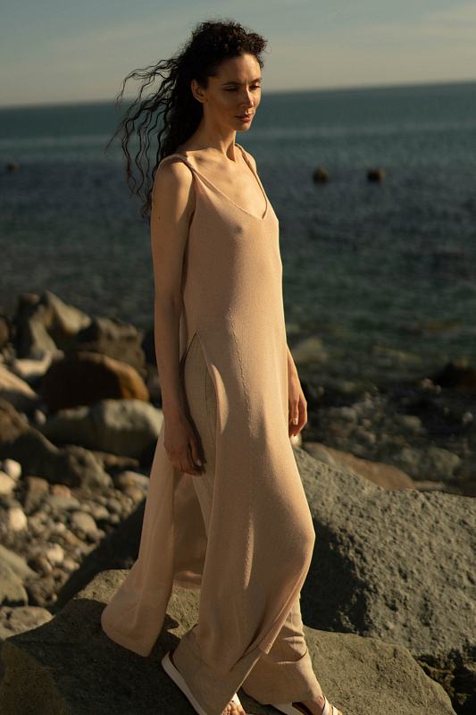 Легкое длинное платье в пол с  эффектным высоким разрезом. Полупрозрачное струящееся полотно. Модель выполнена из тонкой и нежной Итальянской вискозы с мерцающим блеском.