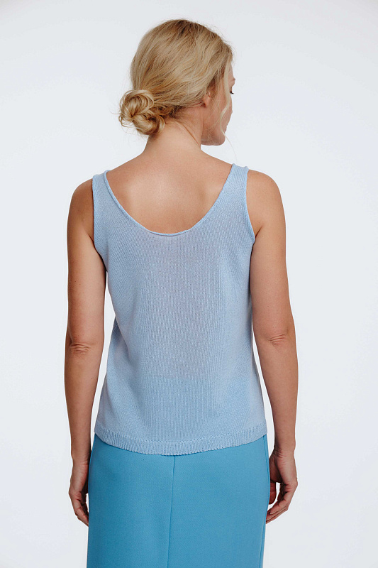 Базовый вязаный топ лаконичного силуэта с круглой горловиной по переду и спинке. Модель является частью непроходящего элемента женского гардероба и может быть использован для создания разных образов.