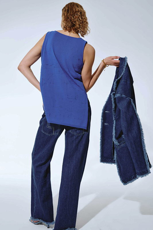Удлиненный вязаный топ полуприлегающего силуэта с V- образной горловиной.
