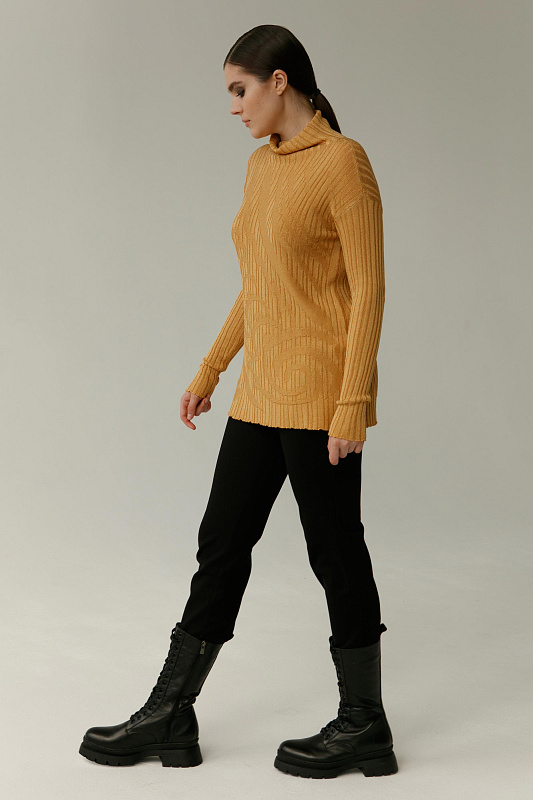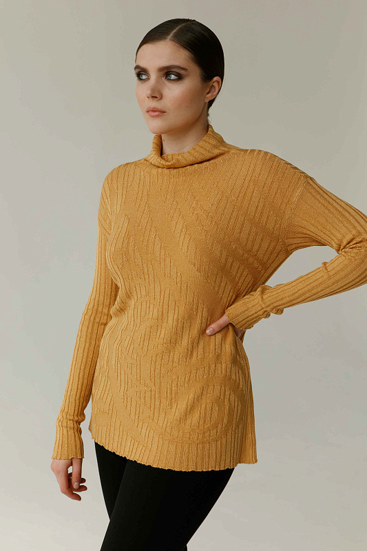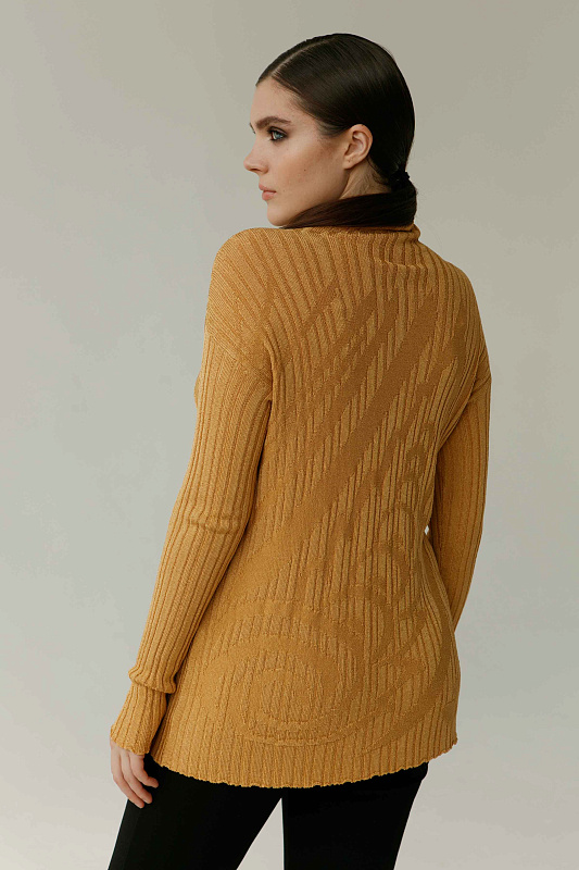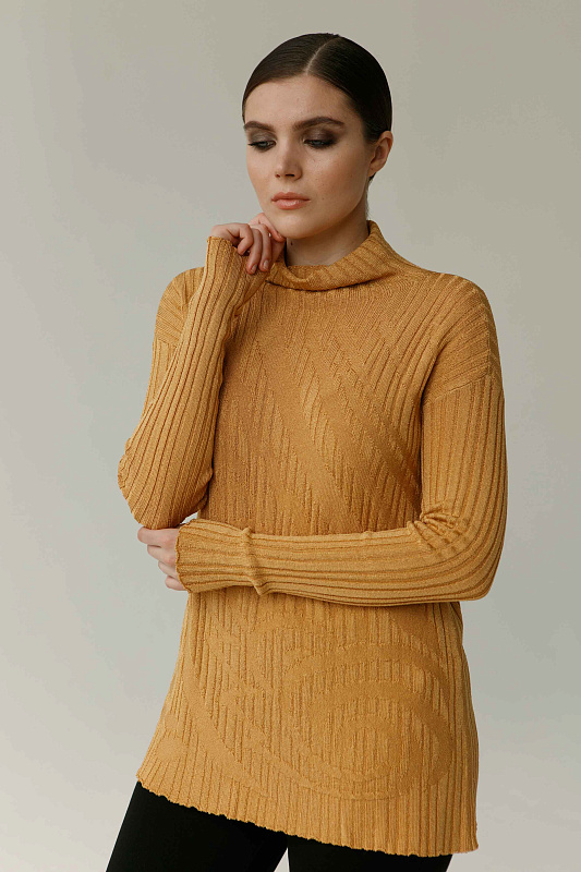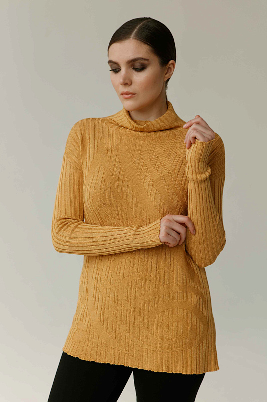 Мягкая облегающая водолазка из нежной глянцевой вискозы с ориентальным узором. Воротник стойка, удлиненный рукав.