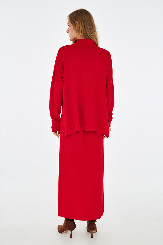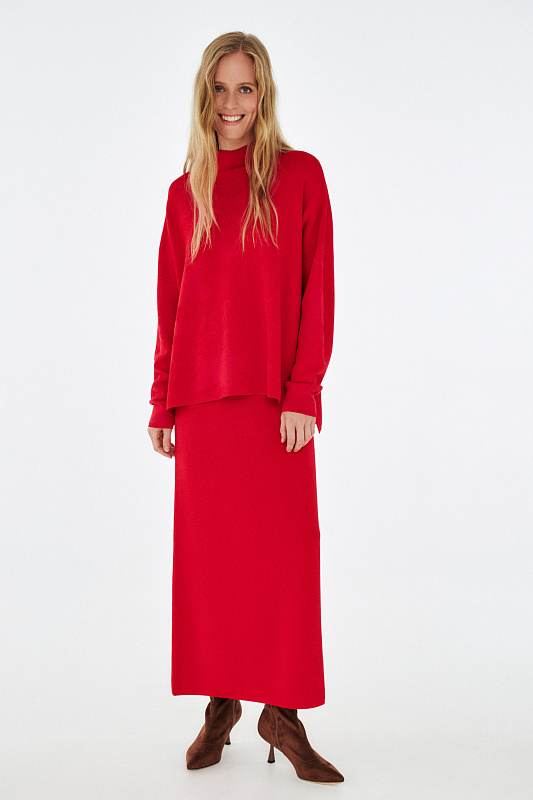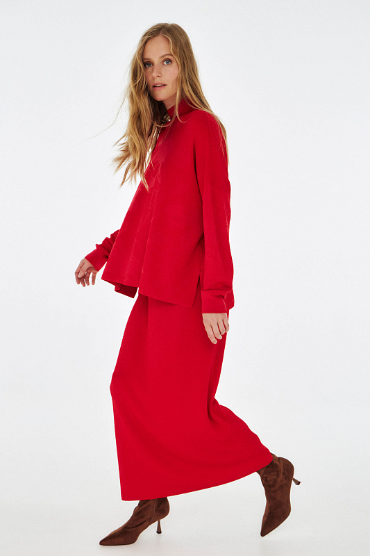 Вязаная эластичная юбка на резинке силуэта «карандаш» с вывязанным логотипом марки. Выполнена жаккардовым переплетением , которое придает полотну мягкость форм и струящийся эффект, а также выгодно подчеркивает удлиненный силуэт и интерпретирует модель в современном ключе.