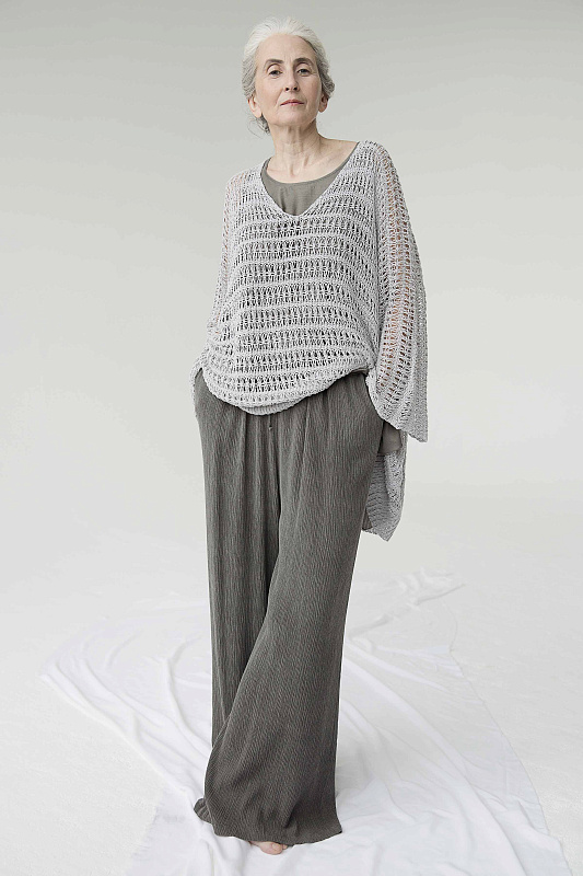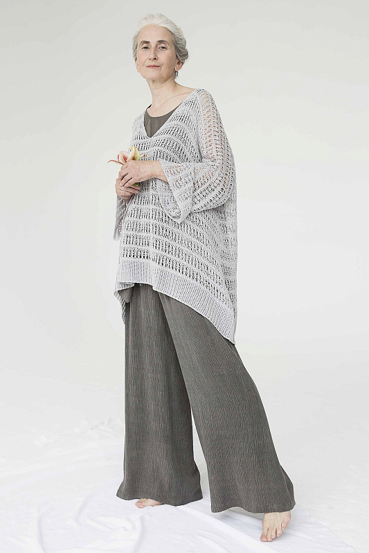 Туника ажур. Модель выполнена из пряжи с блеском, в цвете золото и черное золото, и без него, в цвете цемент и тень. V образный вырез горловины, длинный рукав, удлиненная спинка. Прекрасно дополнит любой предмет базового гардероба. Подходит как для вечернего, так и для дневного образа. Длина по спинке около 76 см. Итальянская пряжа.