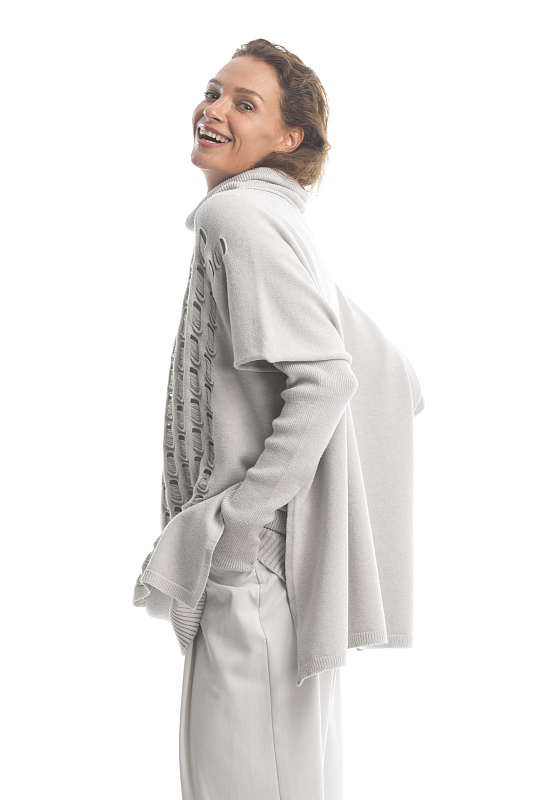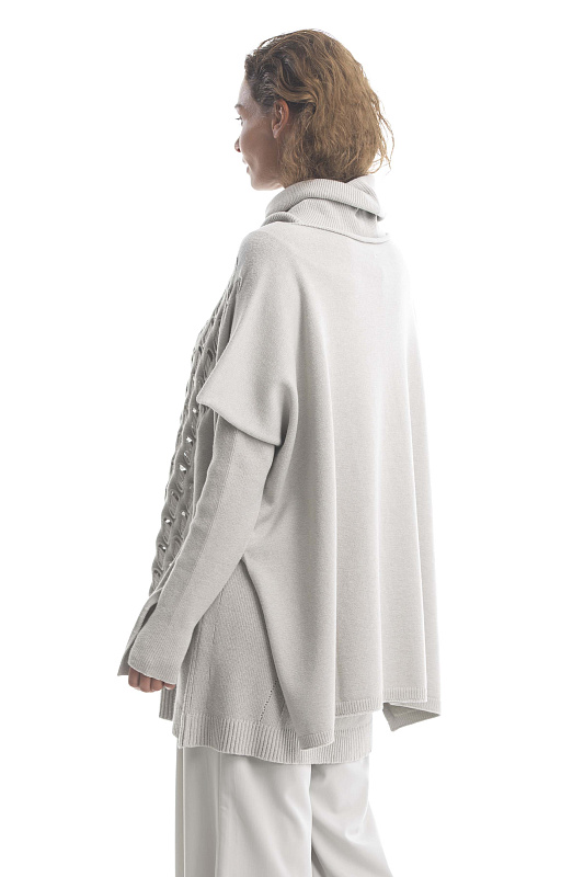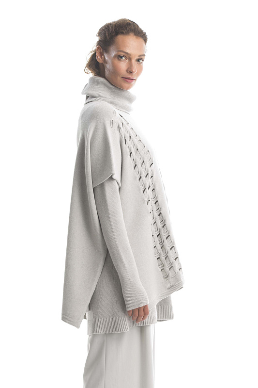 Вязаная туника из пряжи с кашемиром. Особенность этой модели - фактурная вязка дыры с протяжками. Прекрасная модель для дуэтов с платьями.