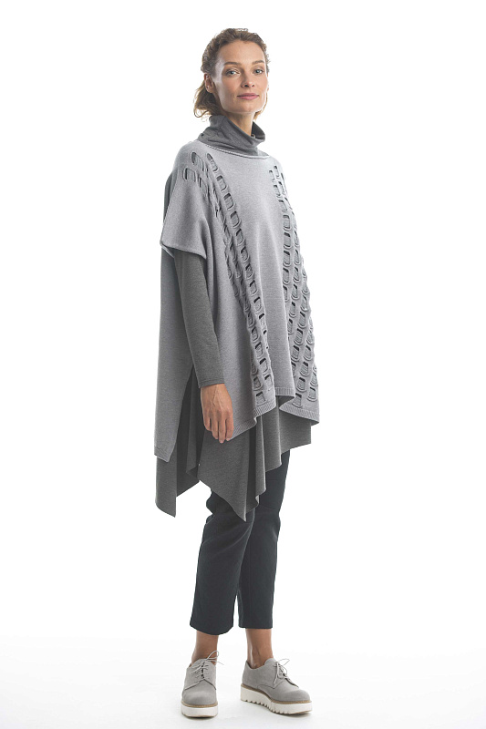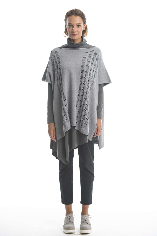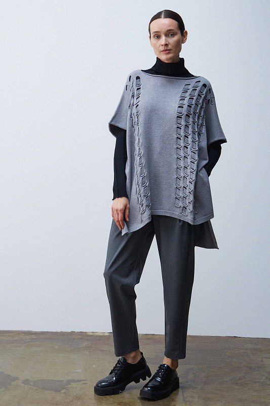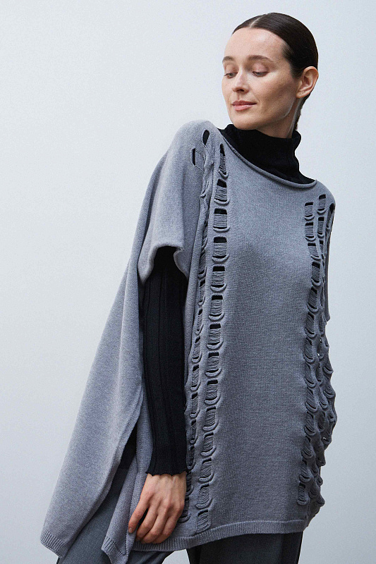 Вязаная туника из пряжи с кашемиром. Особенность этой модели - фактурная вязка дыры с протяжками. Прекрасная модель для дуэтов с платьями.