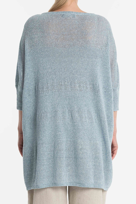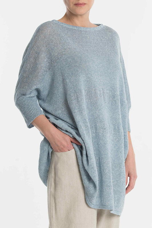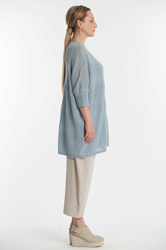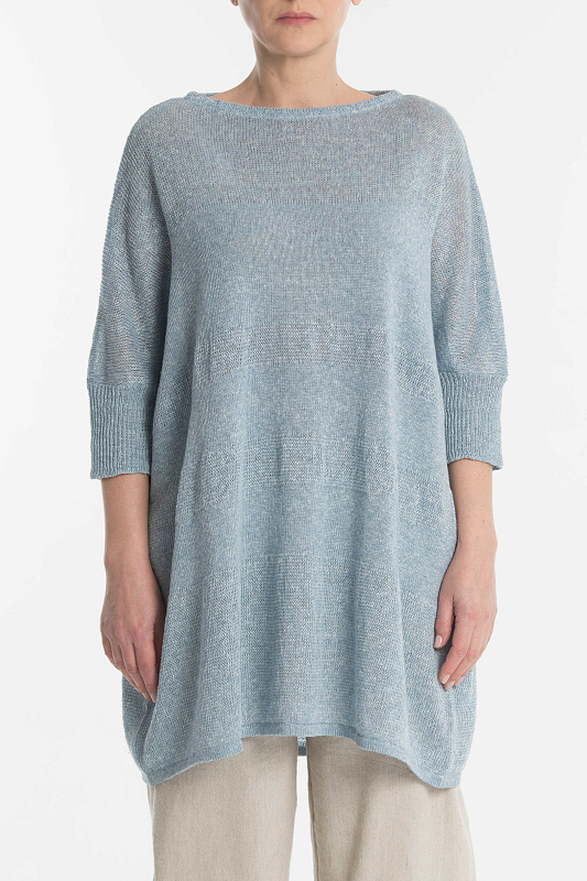 Вязаная туника средней длины из 100% льняной пряжи, проймы выполнены резинкой.