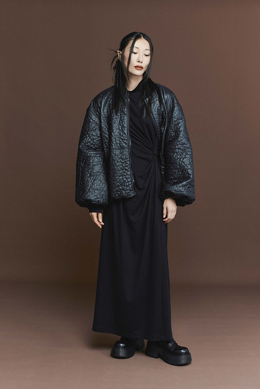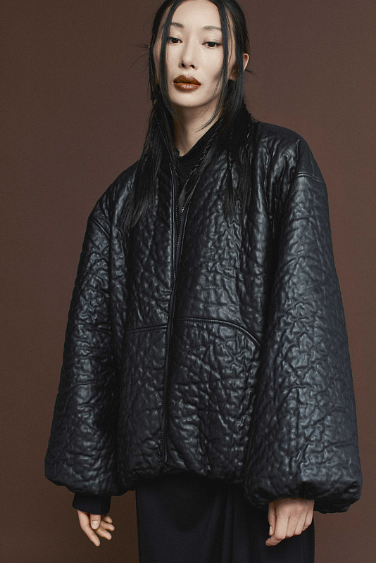 Изысканный бомбер из кожи «креш» с рельефным эффектом. Разъемная двухзамковая застежка-молния с крупными зубцами удобна в использовании, регулирует ширину шага, сохраняет тепло. Ворот классический для бомбера — трикотажная плотная резинка. Расширенные к низу рукава и низ создают мягкий колокол. На рукавах нет резинки, но подвернутый край имитирует стяжку. Прорезные функциональные карманы скрыты в декоративной строчке — фигурной строчке по переду. Спущенная линия плеча создает актуальный oversize-эффект. Втачные рукава усилены дополнительной строчкой. Нестандартный дизайнерский крой и премиальная фактура делают бомбер главным акцентом холодного сезона.