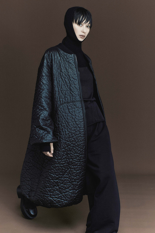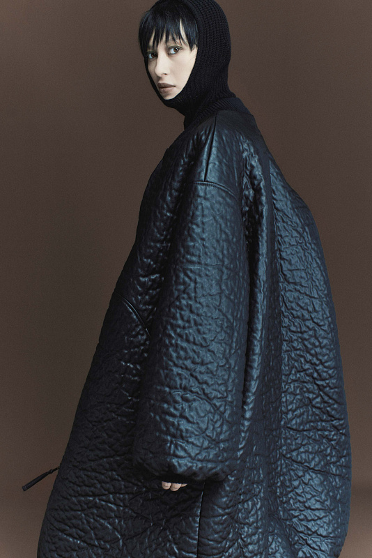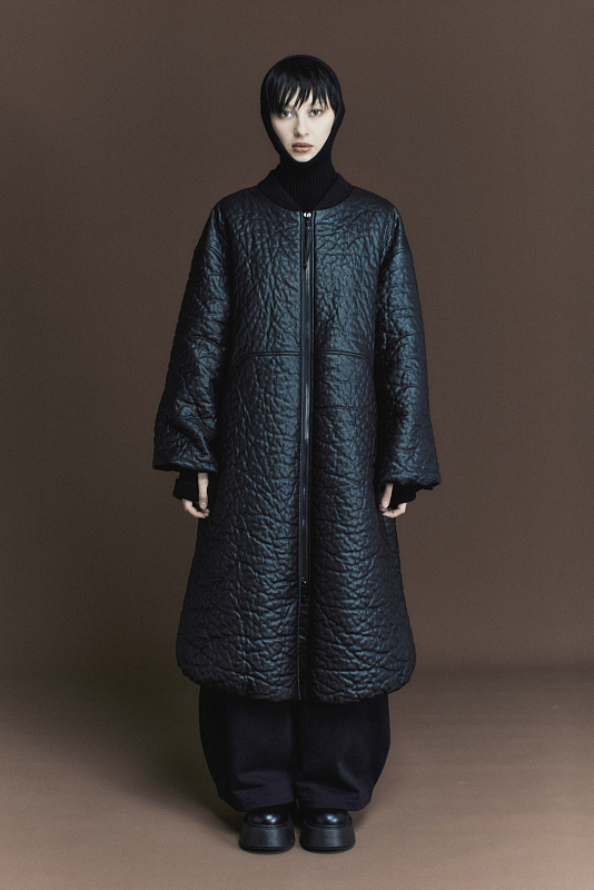 Изысканный бомбер из кожи «креш» с рельефным эффектом. Длина макси защитит от холода и непогоды. Разъемная двухзамковая застежка-молния с крупными зубцами удобна в использовании, регулирует ширину шага, сохраняет тепло. Ворот классический для бомбера — трикотажная плотная резинка. Расширенные к низу рукава и низ создают мягкий колокол. На рукавах нет резинки, но подвернутый край имитирует стяжку. Завершающий конструктивный элемент — кулиска по внутреннему краю низа. Прорезные функциональные карманы скрыты в декоративной фигурной строчке по переду. Спущенная линия плеча создает актуальный oversize-эффект. Втачные рукава усилены дополнительной строчкой. Нестандартный дизайнерский крой и премиальная фактура кожи делают бомбер главным акцентом холодного сезона.
