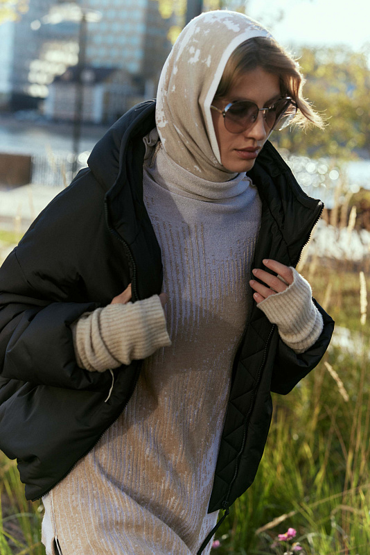 Для создания креативного образа рекомендуем носить в тандеме с утепленной юбкой-поясом из такого же материала.