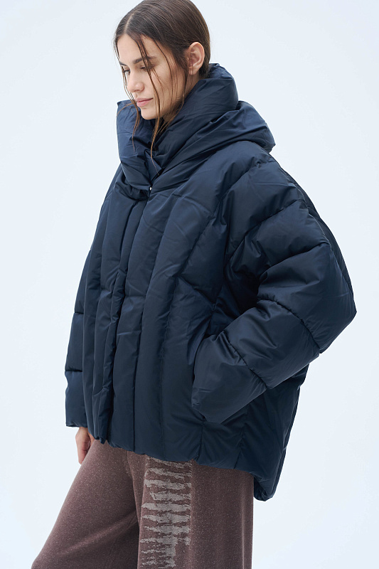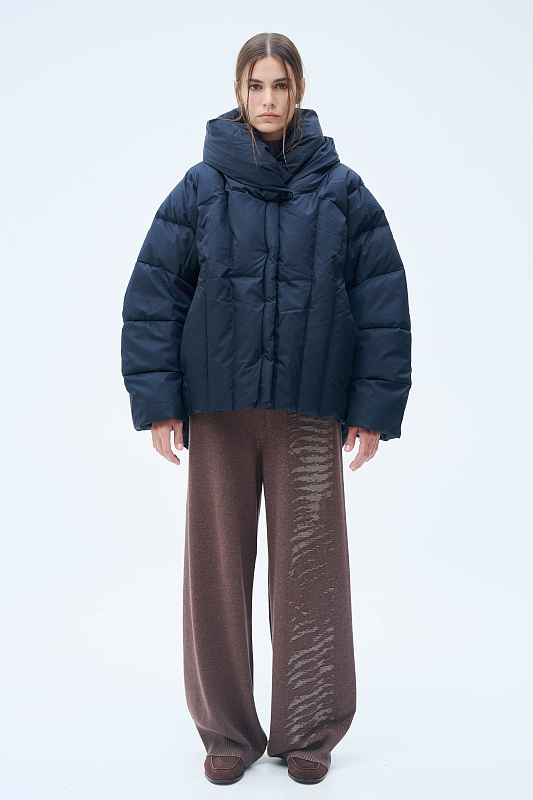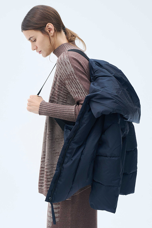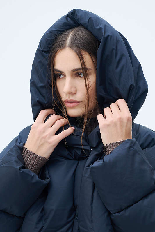 Эта модель — идеальный выбор для города: от офиса до вечерней прогулки. Трендовый фасон — сочетание моделирующего силуэта, объемного воротника, прямой посадки, удлиняющей фигуру, и элегантного рукава «летучая мышь». Спинка куртки чуть длиннее относительно передней части, что обеспечивает дополнительный комфорт и тепло. С той же целью, сохранить тепло и защитить от непогоды, кулиска по внутренней стороне низа куртки. С помощью кулиски можно отрегулировать и объем. Стильная тракторная молния скрыта планкой, сохраняя чистоту линий. Удобные боковые карманы. Объемный капюшон, заменяющий шапку, фиксируется на две кнопки, создавая эффектную драпировку и обеспечивая полную защиту от ветра и мороза. Фирменная вертикальная строчка не только украшает изделие, но и предотвращает сминание утеплителя. Наполнитель из высококачественной смеси пуха и пера 90/10 гарантирует максимальное тепло. Узнаваемый акцент — строчка в виде логотипа бренда украшает спинку и подчеркивает дизайнерское происхождение вещи.