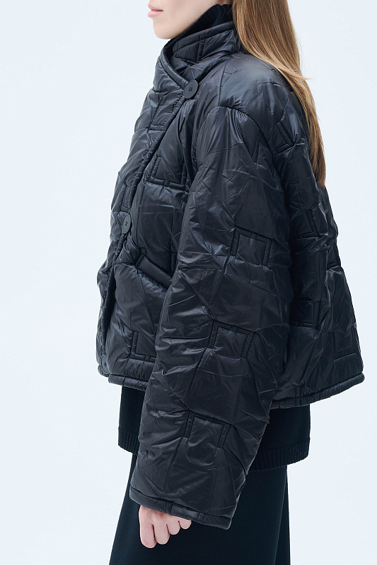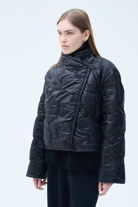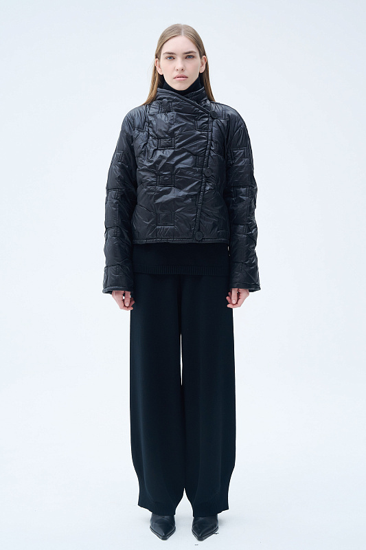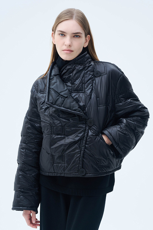 Укороченная стеганая куртка. Модель куртки прямого кроя — тренд, который покорил улицы мегаполисов. Главная изюминка — эксклюзивная стежка. Как ценитель стиля и внимательный к деталям человек, вы сразу узнаете логотип бренда. Укороченный крой визуально вытягивает силуэт. Кулиска по внутренней стороне низа дает возможность регулировать объем и защищает от ветра. Маленький воротник-стойка лаконично вписывается в образ. Рукава прямые. Дизайнерский подход к крою подчеркивает интересная застежка на пуговицы по диагонали. Глубокие карманы — забота об удобстве. Легкий утеплитель идеален для межсезонья. Создавайте миллион стильных образов с одной курткой.