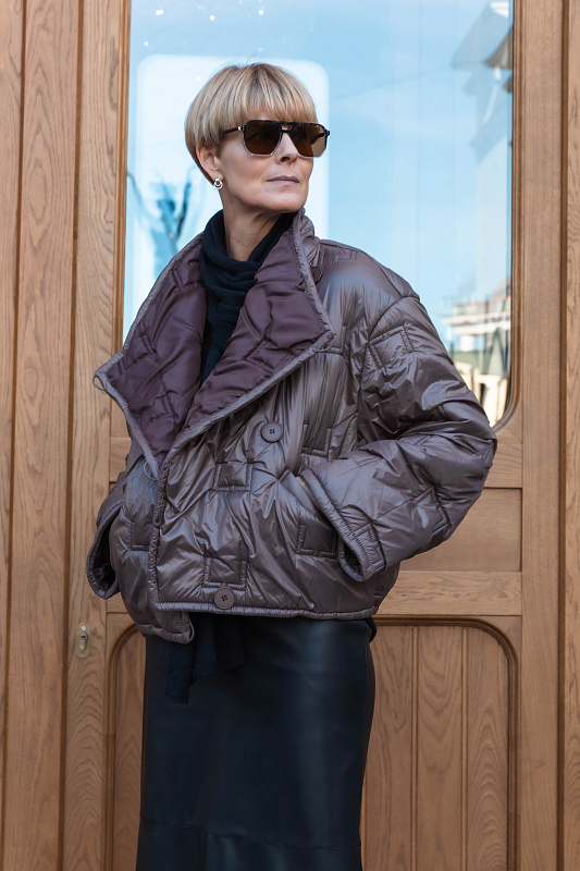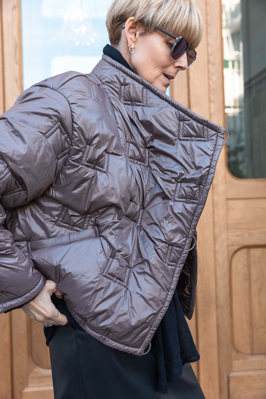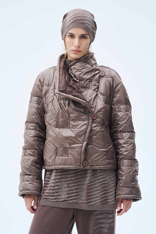 Укороченная стеганая куртка. Модель куртки прямого кроя — тренд, который покорил улицы мегаполисов. Главная изюминка — эксклюзивная стежка. Как ценитель стиля и внимательный к деталям человек, вы сразу узнаете логотип бренда. Укороченный крой визуально вытягивает силуэт. Кулиска по внутренней стороне низа дает возможность регулировать объем и защищает от ветра. Маленький воротник-стойка лаконично вписывается в образ. Рукава прямые. Дизайнерский подход к крою подчеркивает интересная застежка на пуговицы по диагонали. Глубокие карманы — забота об удобстве. Легкий утеплитель идеален для межсезонья. Создавайте миллион стильных образов с одной курткой.
