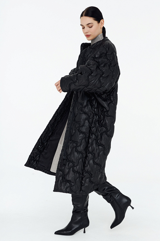 Пальто бомбер - это дизайнерская версия, объединяющая элементы классического бомбера с длиной пальто. Застёжка-молния обеспечивает быстрый способ застегнуть пальто, что особенно удобно в холодную погоду. Молния спрятана под планкой, которая фиксируется снизу магнитной кнопкой - это придаёт изделию более аккуратный и элегантный вид. В модели предусмотрены карманы в боковых швах, но за счет объемной замысловатой строчки, они абсолютно незаметны. Еще одна функциональная деталь - капюшон, для защиты от холода и ветра он застегивается на две магнитные кнопки. Если капюшон не нужен, его можно отстегнуть с помощью молнии. Пальто бомбер выполнено из эко кожи, особенностью которой является хорошая воздухопроницаемость, устойчивость к перепадам температур, простота ухода. Декоративная строчка ткани позволит модели стать частью стильного образа.