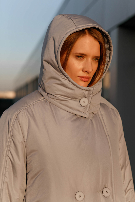 Лаконичное и одновременно стильное, длинное и уютное пальто с современным наполнителем. Двойной воротник-стойка с запахом и теплый отстегивающийся капюшон с застежкой на пуговицу защитят от ветра и холода. Комфортный крой в стиле оверсайз с цельнокройной кокеткой по спинке, переходящей в рукава. Застежка на пуговицы с внутренней и внешней стороны. Удобные карманы в боковых швах. Свободные рукава дополнены изысканными патами на манжетах. Мягкая подкладка из шелковистой вискозы.