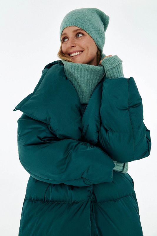 Удлиненный пуховик с ассиметричной застежкой на пуговицы. Объемный воротник, переходящий в глубокий капюшон. Выполнен из облегченной водонепроницаемой и одновременно дышащей ткани. За сохранение тепла отвечает отборный гусиный пух с показателем fill power 800. Такой наполнитель позволяет носить пальто при морозах до -25 градусов. Свободный крой и удобные карманы в боковых швах обеспечивают максимальный комфорт. На внутренней стороне вшиты эластичные лямки - резинки, которые при необходимости позволяют не снимать пальто полностью, а просто скидывать с плеч. Внутри рукава предусмотрена резинка, обеспечивающая защиту от поддувания, а по низу - регулируемая кулиска. На спине пуховика эффектная отстрочка в виде логотипа бренда.