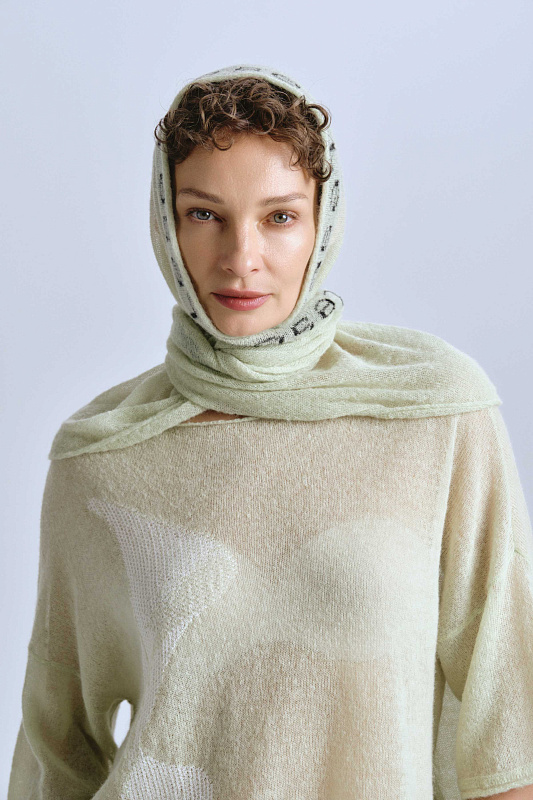 Легкая и уютная вязаная косынка воздушного и полупрозрачного вязания — идеальный многофункциональный аксессуар. Невесомая, но уютная, она выполнена из пушистой и нежнейшей пряжи «Бэби Альпаки». Аксессуар можно стилизовать как головной убор, стильный шарф, яркий акцент. Контрастная полоса в виде логотипа LESEL как завершающий штрих узнаваемости бренда.