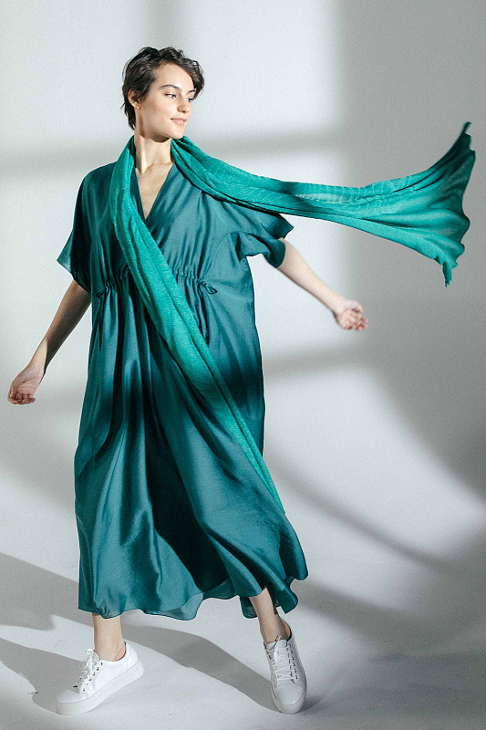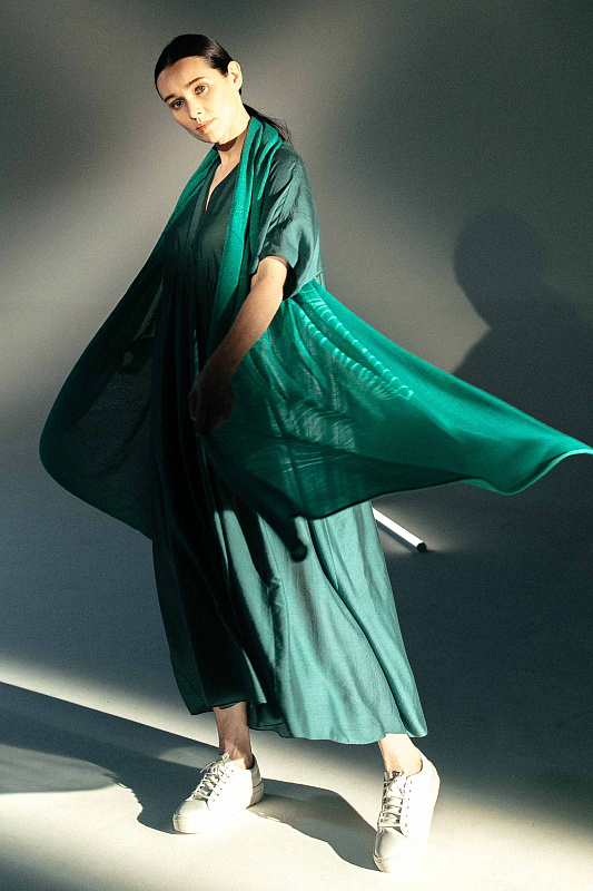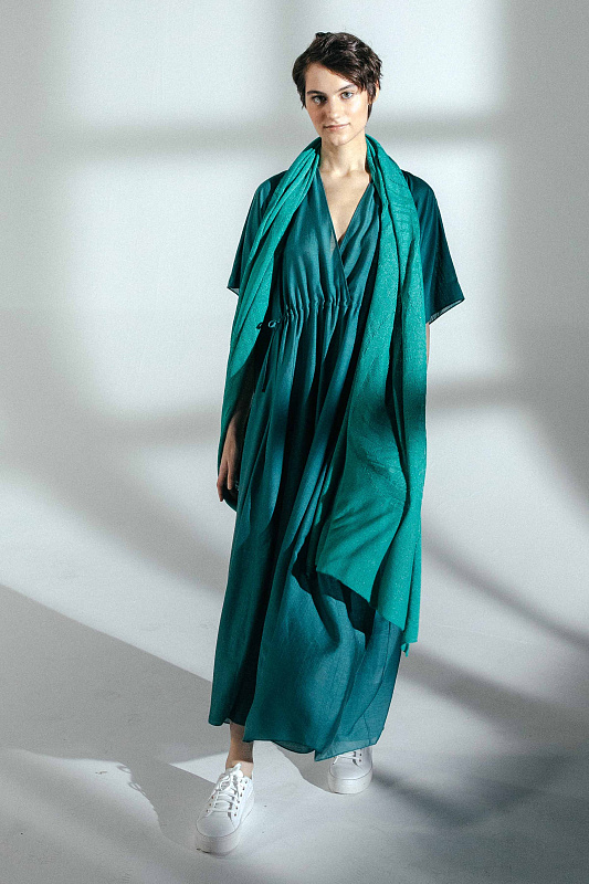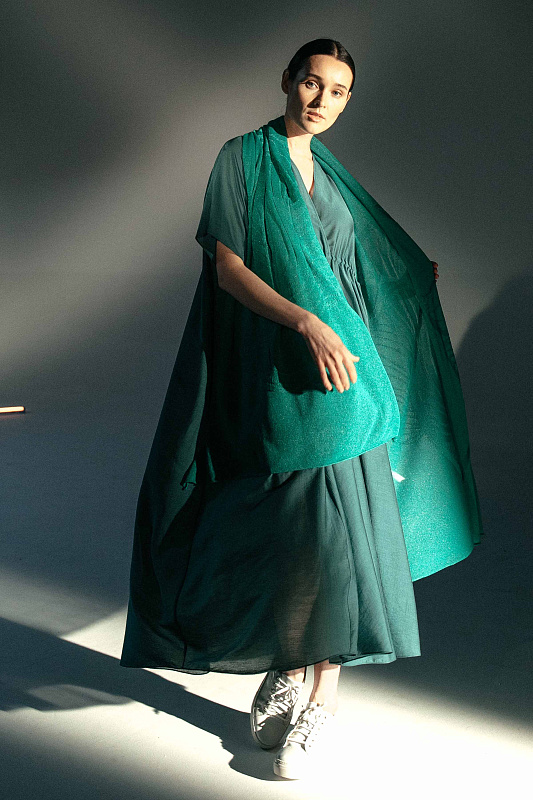 Палантин из тонкого полотна с фактурным рисунком в виде  переплетающихся листьев. Палантин помогает создать яркий и выразительный образ.