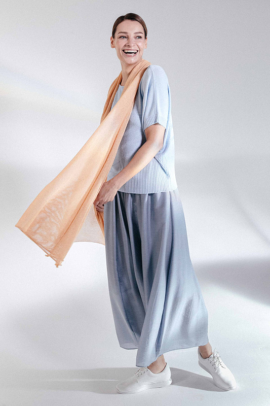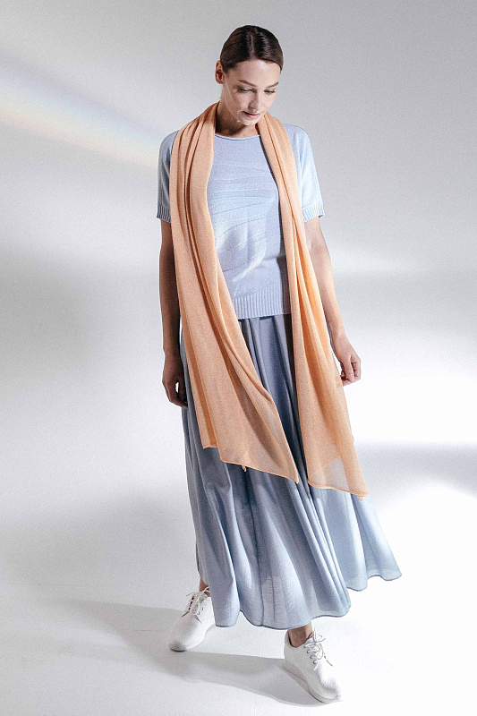 Легкий палантин из фантазийной итальянской пряжи - прекрасное завершение весеннего образа.