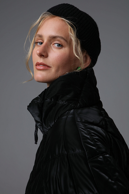 Плотная теплая цельновязанная шапка из тонкой буклированной пряжи. Без дополнительного объема.