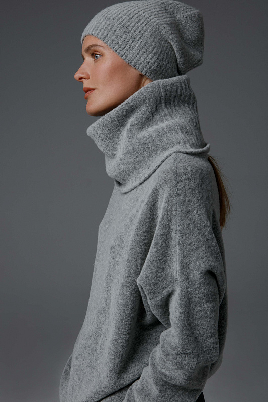 Плотная теплая цельновязанная шапка из тонкой буклированной пряжи. С небольшим дополнительным объемом. Выполнена ластичной вязкой  в три нити, поэтому подходит для морозов.