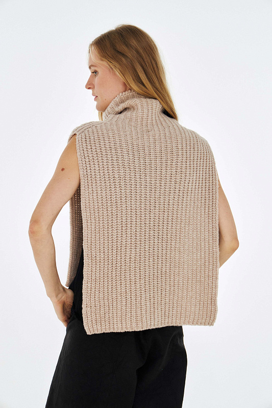 Цельновязаный воротник – манишка из пряжи нежнейшей тонкой шерсти бэби альпаки и тонкой шерсти мериноса,  выполненная объемным переплетением.