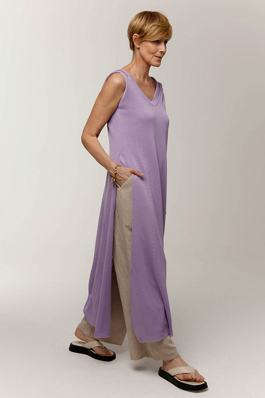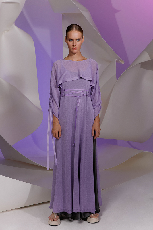 Легкое длинное платье в пол с эффектным высоким разрезом. Полупрозрачное струящееся полотно. Модель выполнена из тонкой и нежной Итальянской вискозы с мерцающим блеском.