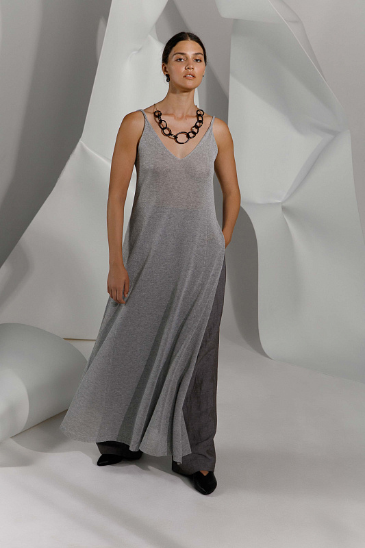 Легкое длинное платье в пол с эффектным высоким разрезом. Полупрозрачное струящееся полотно. Модель выполнена из тонкой и нежной Итальянской вискозы с мерцающим блеском.