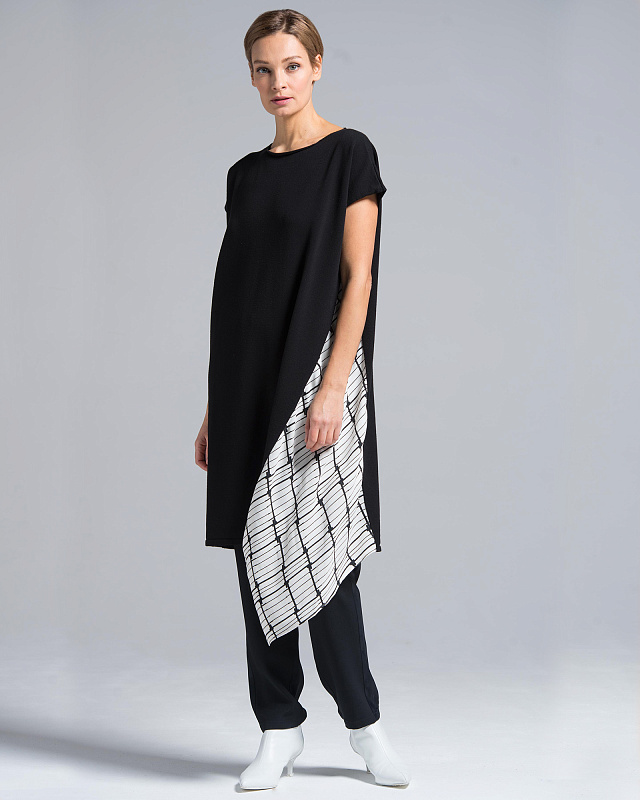 Оригинальное дизайнерское платье из итальянской вискозы лимитированной коллекции Resort 2019, прямой силуэт с боковой вставкой из ткани - асимметрия, спущенная линия плеча, вырез горловины лодочка, без рукавов.