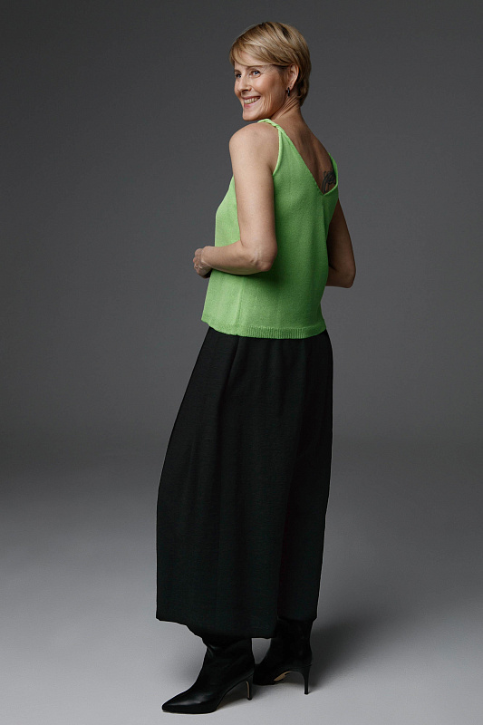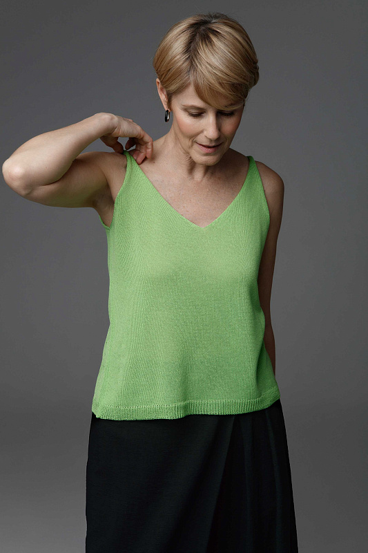 Оригинальный топ прямого силуэта с перекрученными бретелями. Полупрозрачное струящееся полотно. Модель выполнена из тонкой и нежной Итальянской вискозы с мерцающим блеском.