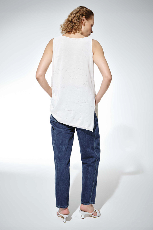 Удлиненный вязаный топ полуприлегающего силуэта с V- образной горловиной.