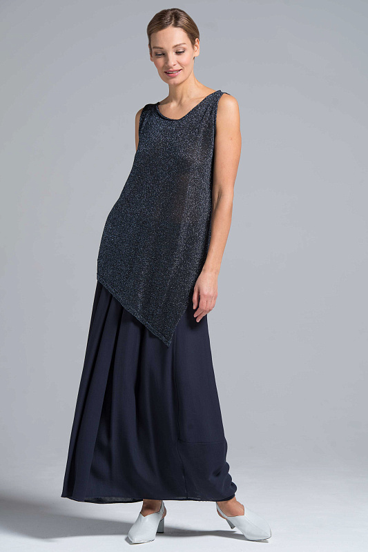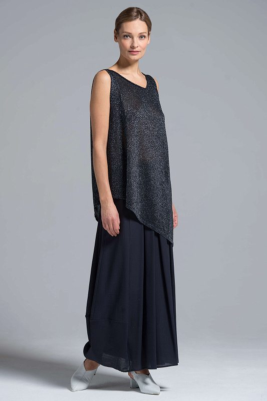 Оригинальный топ углы гладкий блеск. Топ свободного силуэта с асимметричным диагональным низом и асимметричным V-образным воротом лимитированной коллекции Resort 2019 из тонкого мерцающего полотна с люрексом. Благородный блеск помогает создать многогранный и элегантный образ как для повседневного, так и для вечернего выхода. Длина по правой стороне 64 см, по левой 93 см. Итальянская пряжа.