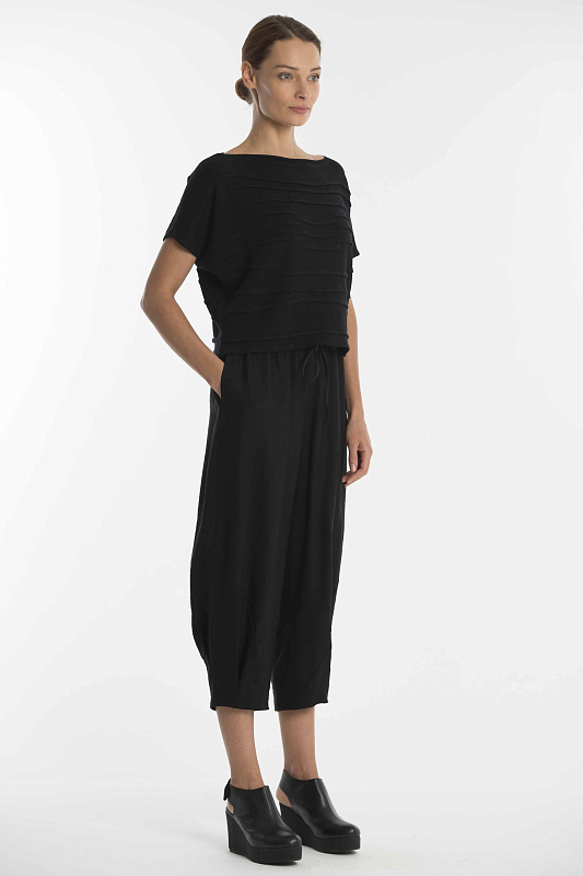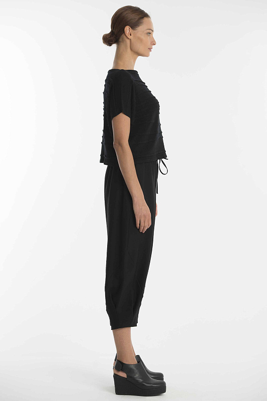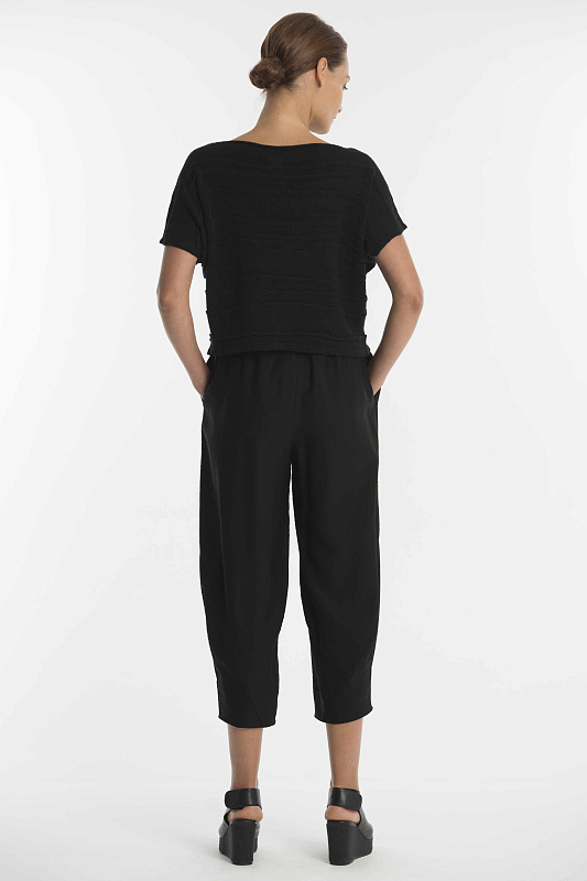 Укороченный топ в стиле оверсайз с горловиной лодочка и фактурной вязкой, имитирующей волны.