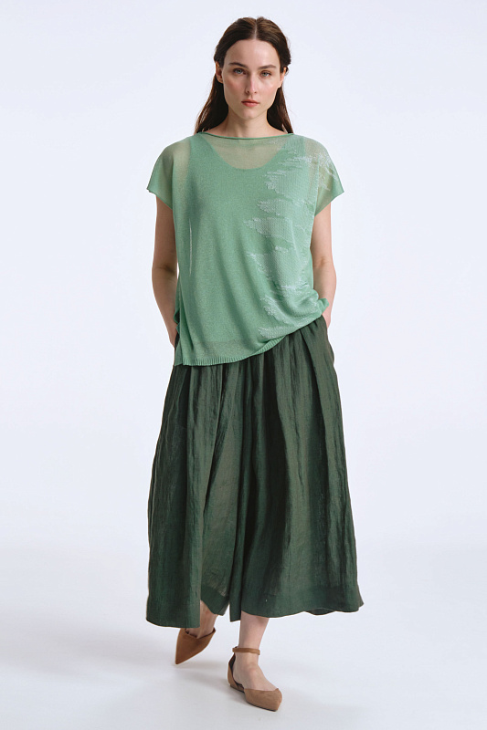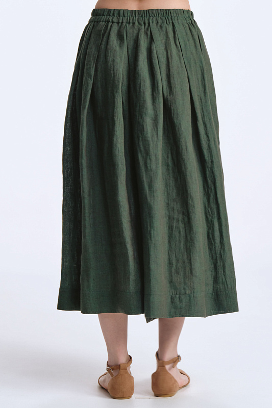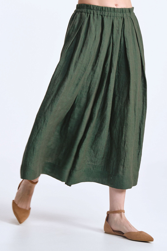 Юбка-брюки из льна — легкость в каждом шаге. Свободный силуэт, напоминающий струящуюся юбку, сохраняет динамику брюк, даря уверенность и свободу движений. С каждой стиркой лен становится мягче, сохраняя благородную текстуру и экологичную чистоту. Удобная резинка пояса с мягкими заложенными складками адаптируется к вашему силуэту. Скрытые карманы не нарушают чистоту линий, практичны, чтобы держать под рукой мелочи. Незаметная молния в боковом шве — это гарантия идеальной посадки и лаконичного дизайна. С этой моделью юбки-брюк вам не придется выбирать между стилем и удобством.