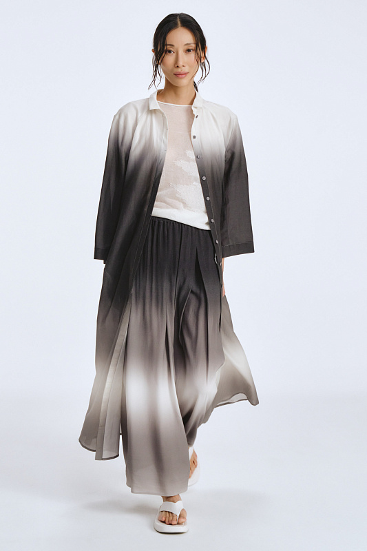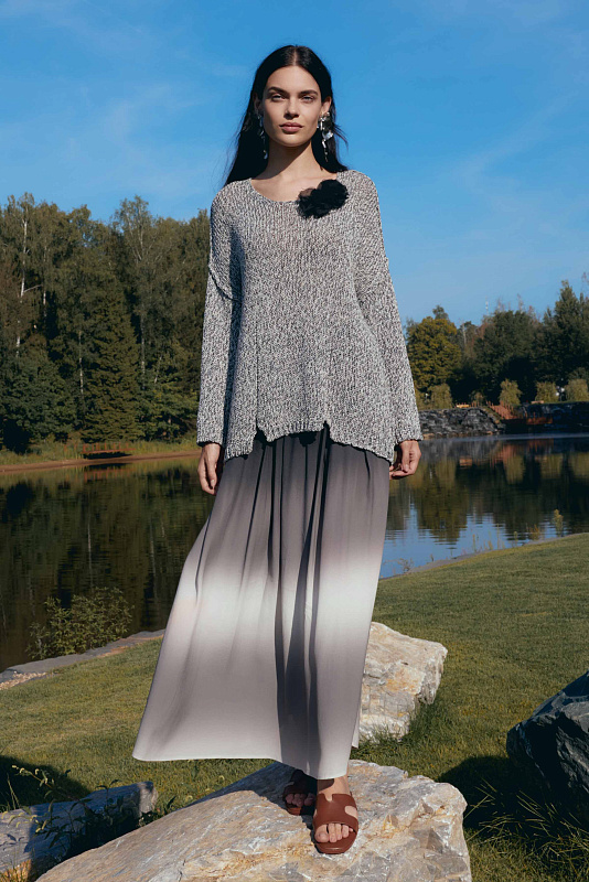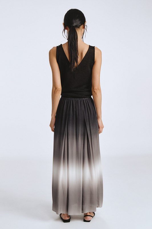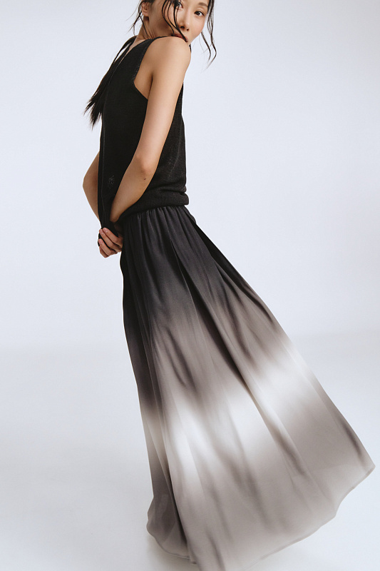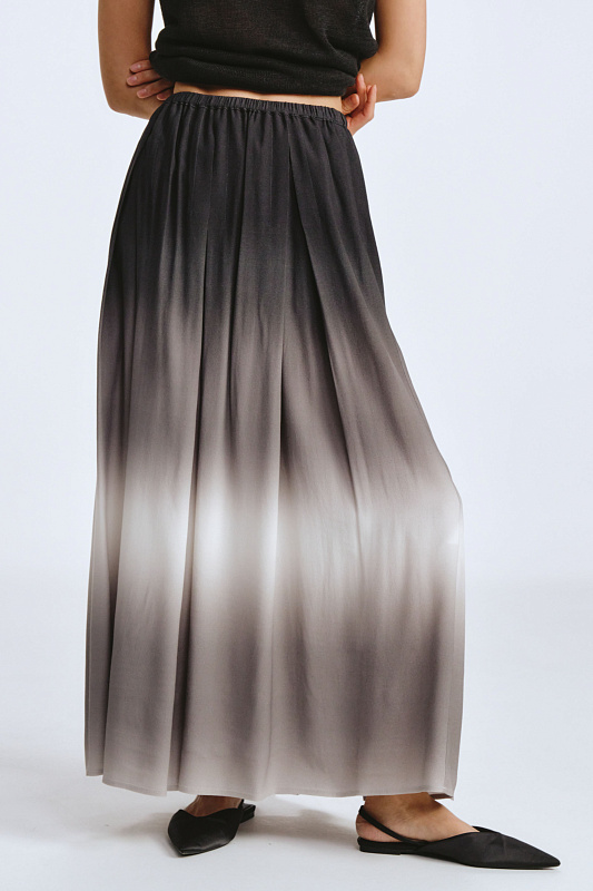 Юбка-клеш из струящейся вискозы создает женственный, грациозный силуэт. Заложенные в пояс-резинку складки добавляют динамики, превращая простую юбку в произведение модного искусства. Пояс-резинка мягко облегает талию, юбка садится «как влитая» и не требует постоянной корректировки. Вместительные карманы — не просто декор, это комфорт и удобство. Скрытый крой карманов не добавляет лишнего объема, сохраняя чистоту линий. Юбка выполнена из ткани с эффектом деграде — плавные переходы цвета создают неповторимые визуальные эффекты. Юбка-клеш со складками — не просто одежда, а настроение, которое Вы создаете сами.