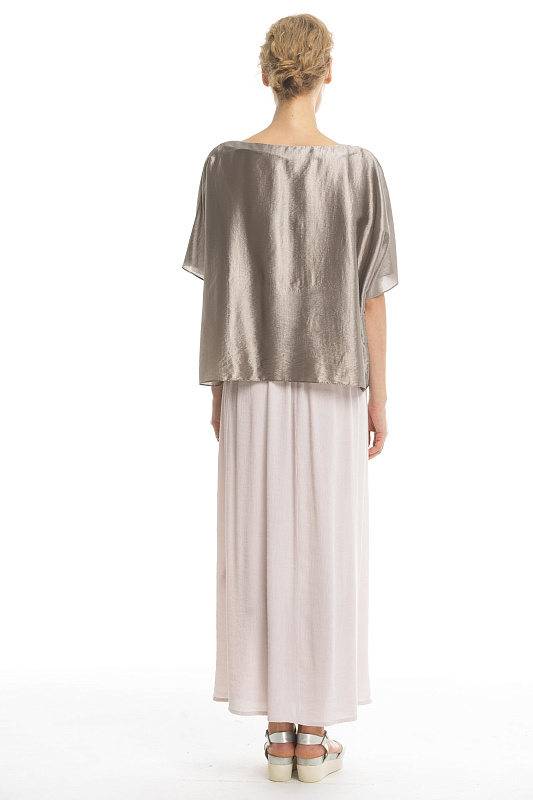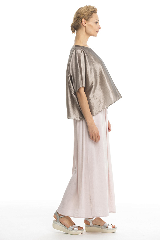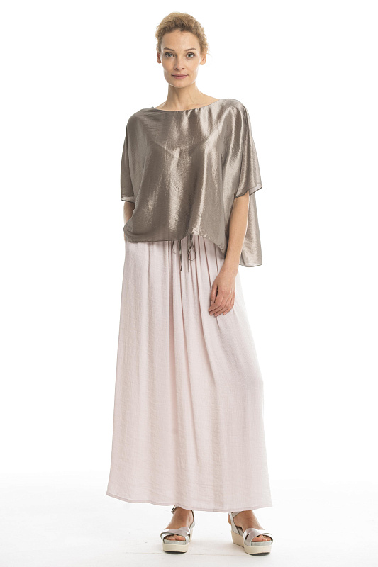 Нежная воздушная юбка из вискозной ткани гофре. Пояс на резинке и шнуром в кулиске. В боковых швах карманы.