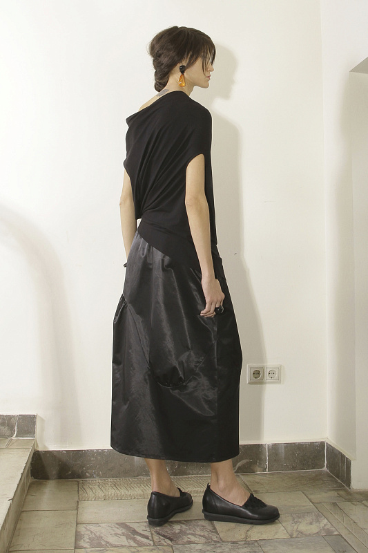 Юбка Изгиб оригинального кроя из атласного хлопка.