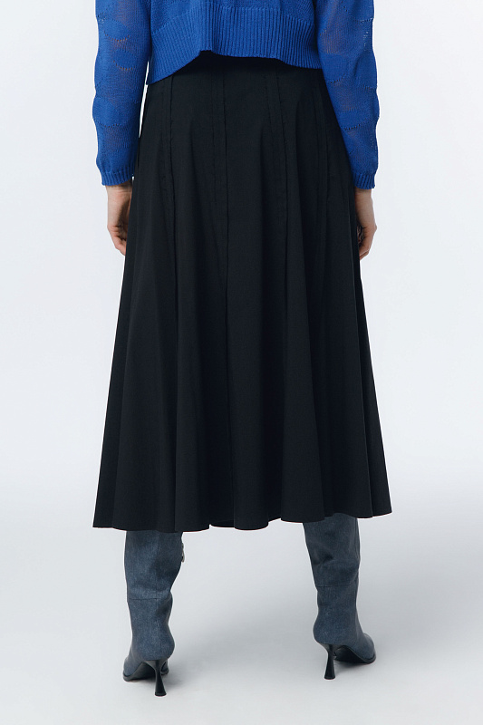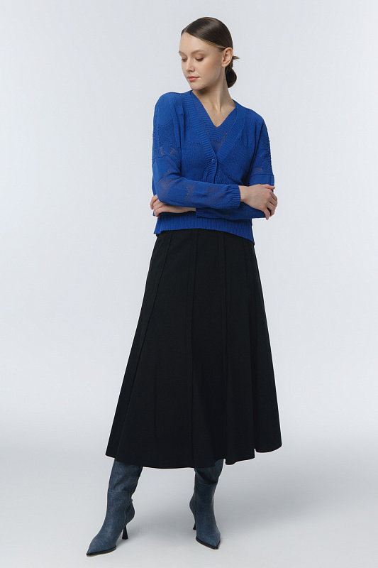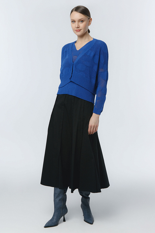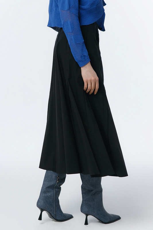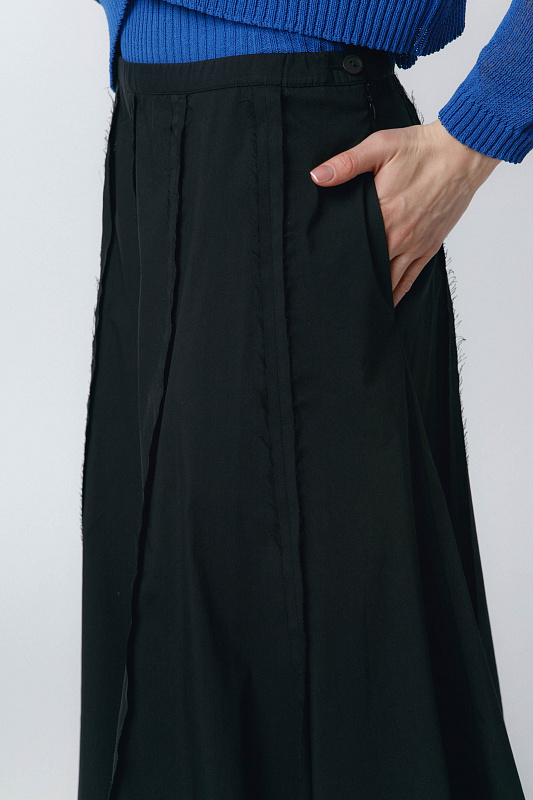 Оригинальная юбка струящегося А-силуэта. Особую стилистику гранж придают модели необработанные швы на клиньях. Тонкий пояс с деликатной резинкой, застежка сбоку на молнии и пуговичке. Карманы в боковых швах.