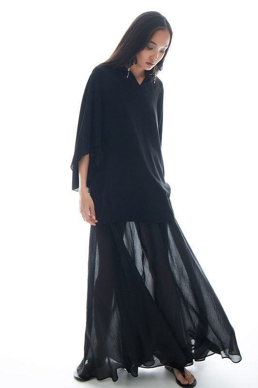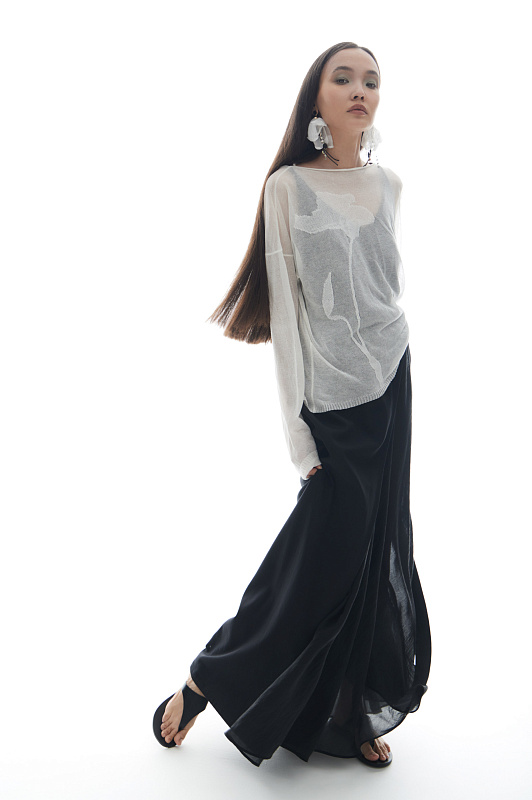Смелый и провокационный элемент гардероба — прозрачная юбка-клеш. Изюминка для особых случаев, вечерних мероприятий или создания ярких нарядов. Пояс на резинке обеспечивает плотную посадку, не сковывая движений. Вторым слоем у изделия пикантный короткий подъюбник. Правильное сочетание юбки с другими предметами гардероба сделает ее дизайнерским элементом стиля и моды.